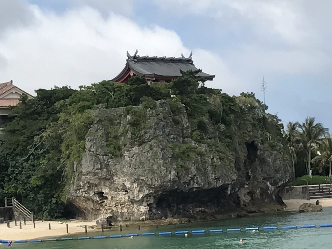 神社の裏手には、波之上ビーチがあり、ビーチからは、岩の上の神社が綺麗に見えて素敵です。