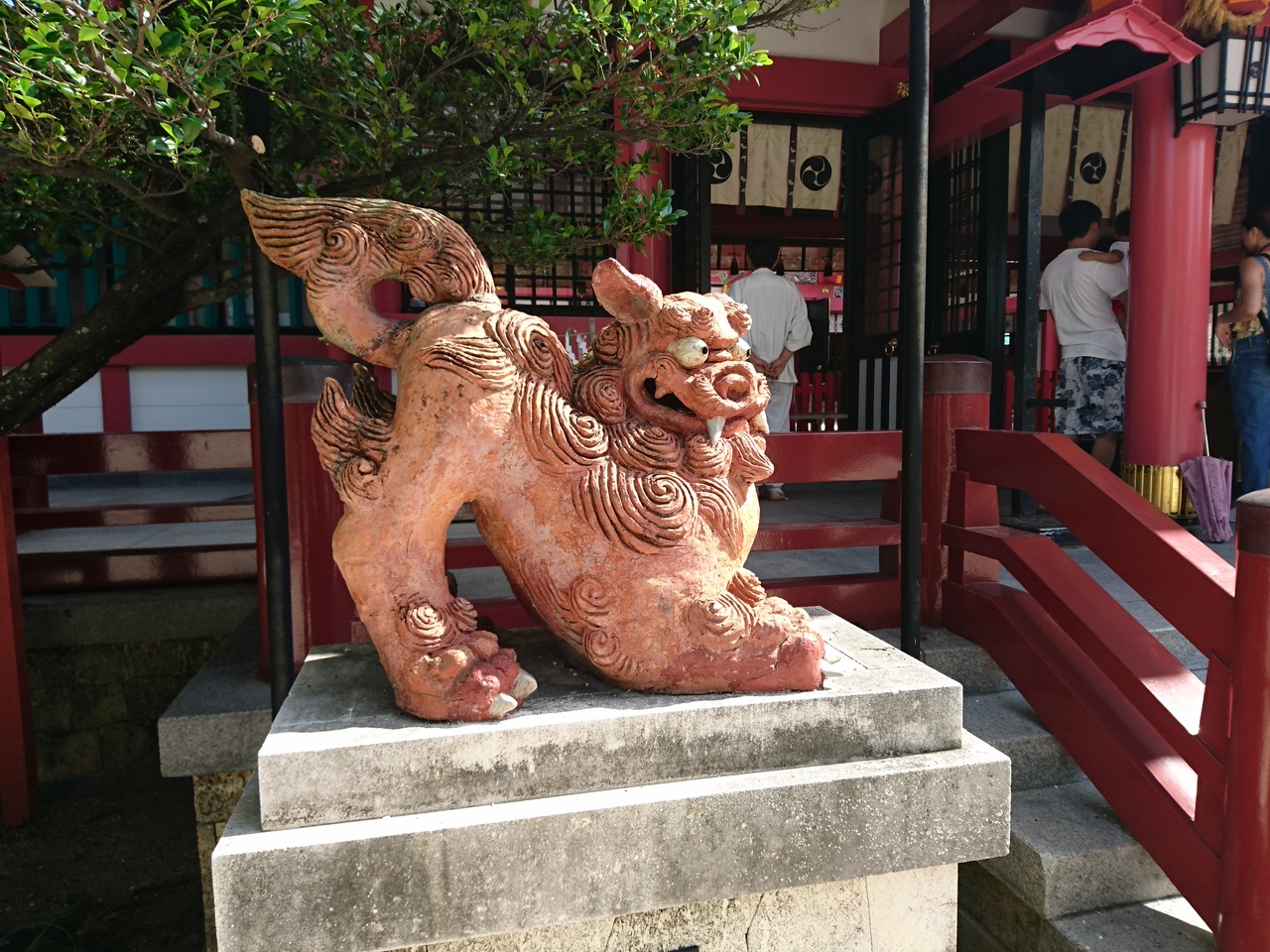 県庁前と旭橋の中間あたりの泉崎の交差点から、久米道路を海に向かって1きろ弱歩くと、その突き当たりに神社があります。