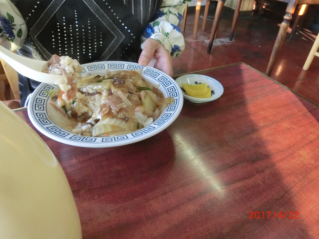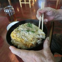 義母は考えた末はが良くないので肉抜きの玉子丼。