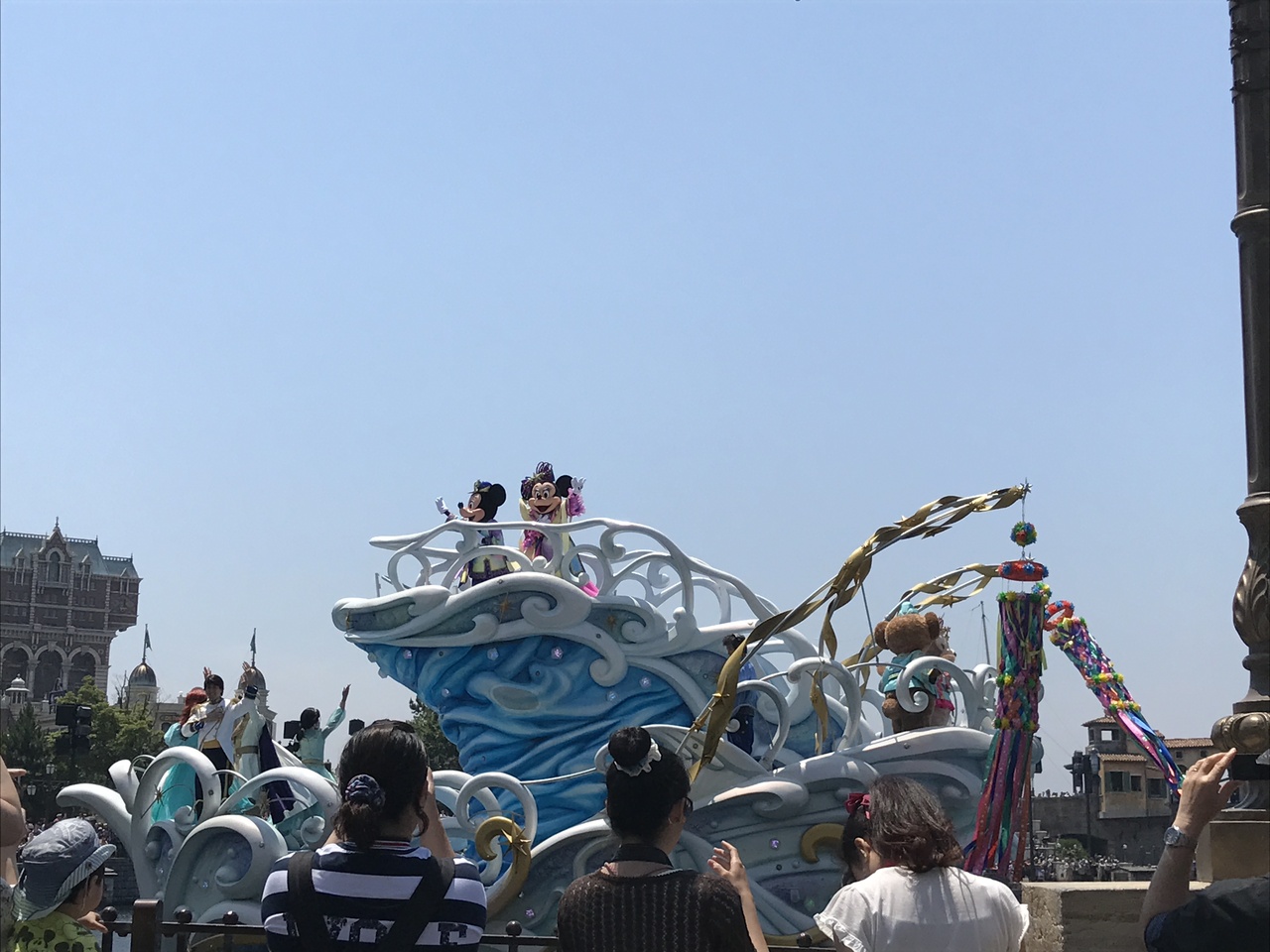 6/16(金)に行って来ました。6/15~7/7まで七夕のイベントを開催しています。メディテレーニアンハーバーでは七夕グリーティングのショーがやっていて、七夕のコスチュームを着たミッキー&ミニー、ダッフィー&シェリーメイが船に乗って登場します。