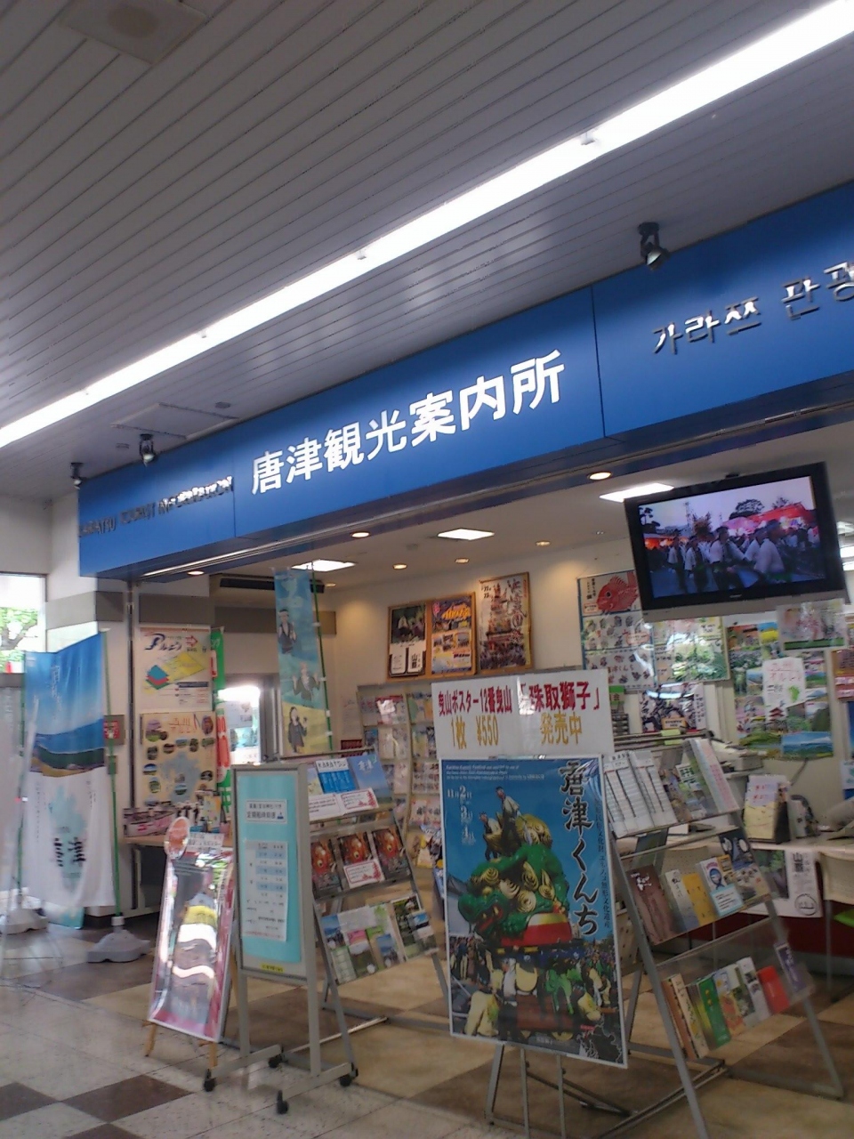JRの唐津駅の改札を出ると目の前にブルーの看板が出ているので、とても目立ちます。こんな改札の目の前にある観光案内所は珍しいと思います。唐津が観光に力を入れているのが良くわかります。ここで唐津の観光マップを貰って、観光をスタートしました。