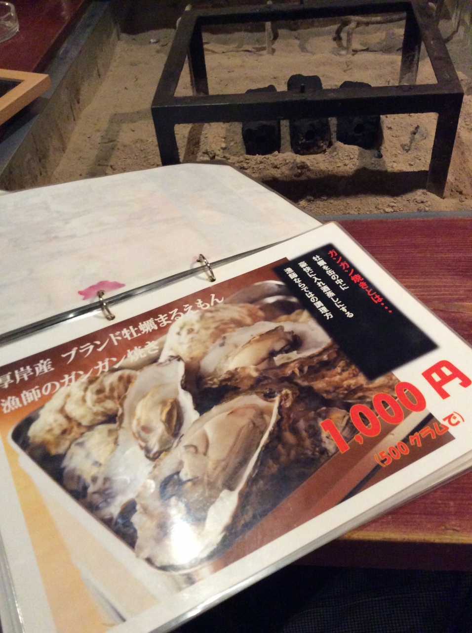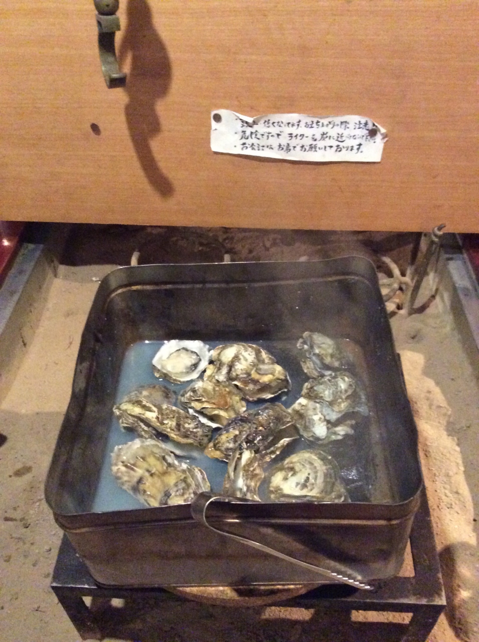 牡蠣は目の前の囲炉裏で焼いて、いただきました。