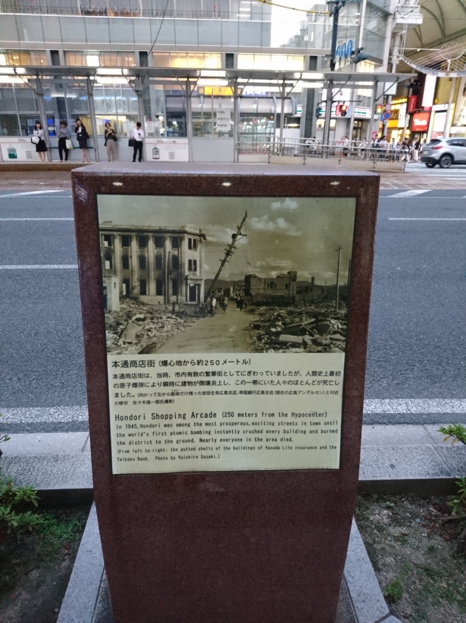 そして、道の傍らには被爆したこの本通商店街の写真もありました。