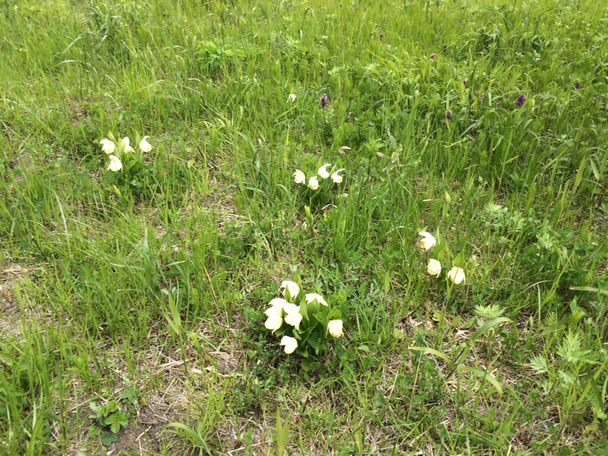 念願のレブンアツモリソウ群生地、6月初旬でしたが、ちょうど良い咲き具合でした。ツアーの場合は難しいかもしれませんが、管理人の方に尋ねれば、ここ以外の見事な場所も教えてくださいます。管理人さんたちがとても親切で、レブンアツモリソウの素晴らしさにぴったりでした。