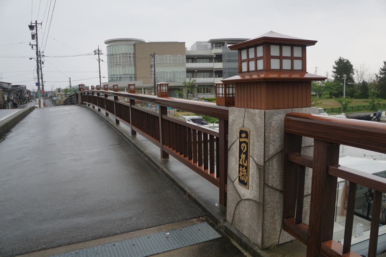 二の丸橋は、新湊地区の橋巡りで。二の丸とかいうとお城がイメージされますが、この橋も橋柱や欄干にデザインされているのは櫓に見えなくもないでしょう。夜になったら灯りもつきそうな感じ。近くには放生津城跡というのがあるのですが、ただ、時代が違うので、関連度は低いかなは思います。