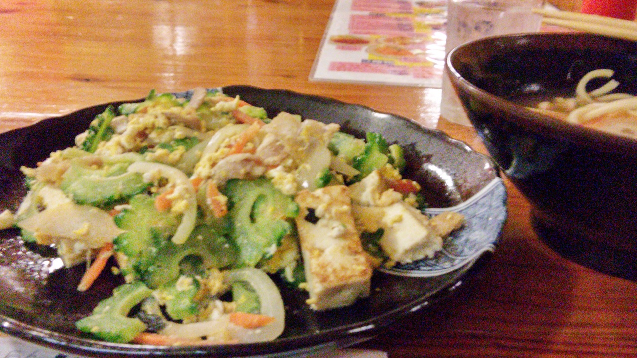 宮古そばとゴーヤチャンプルを注文。両方とも美味しかったです。