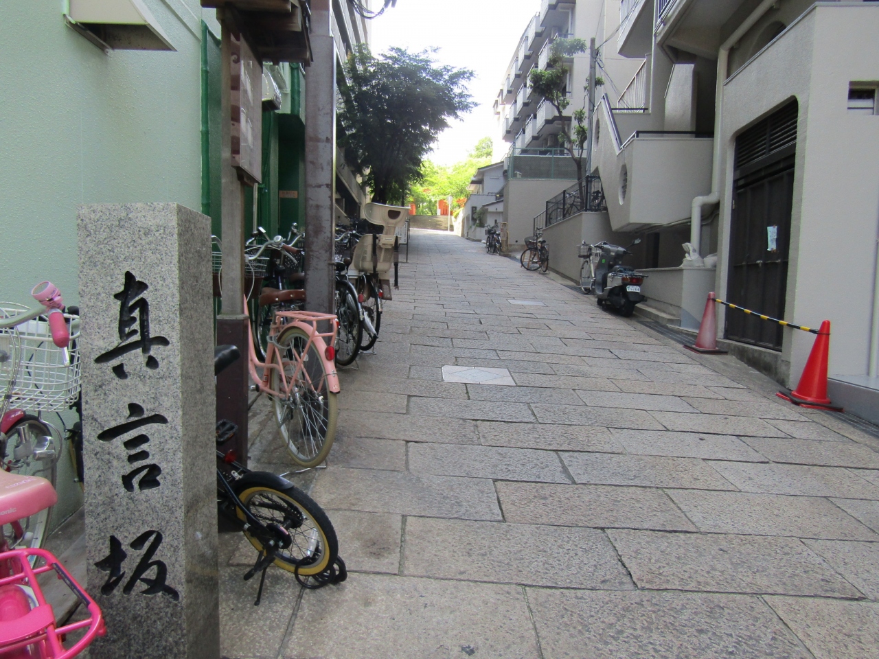 天王寺七坂のうちの一つです。千日前通から生玉さんへ続く坂です。この坂道だけ南北方向です。(他は東西)坂は短めです。