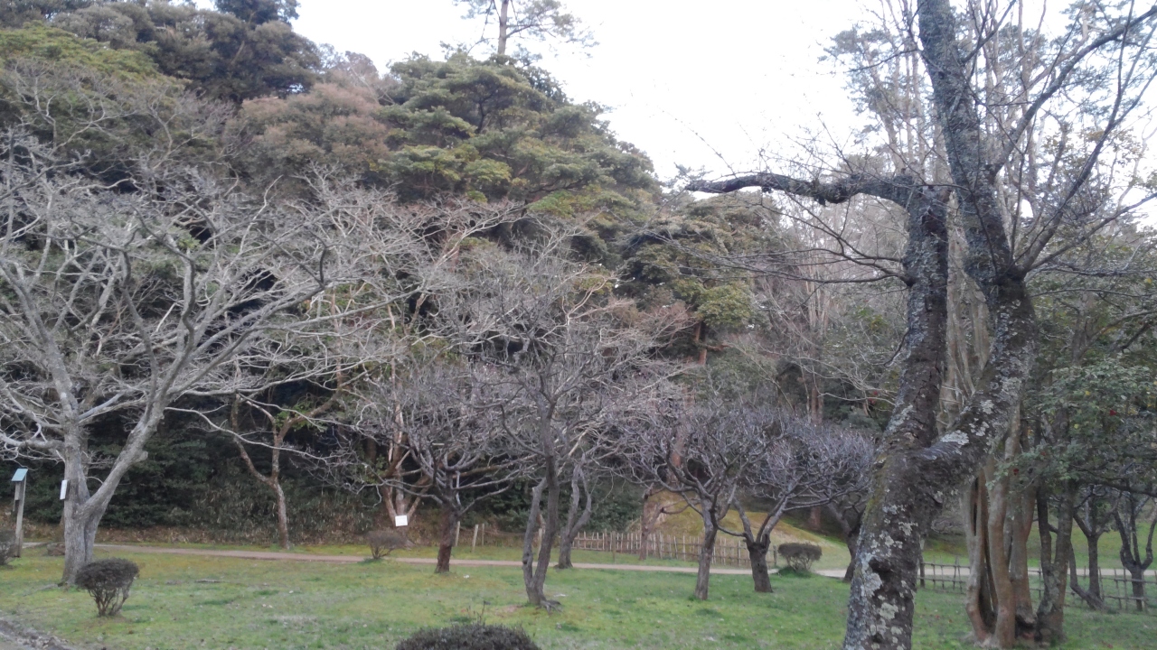 夏がまだ始めないときに、入り口に葉がない木で、橋を渡りました。中にもっとそのタイプの木があります。回るで20分ごろ歩いて行きました。公園の中に、西洋の様子の興雲閣で、普通の公園と城の景色に強くて対照されます。
