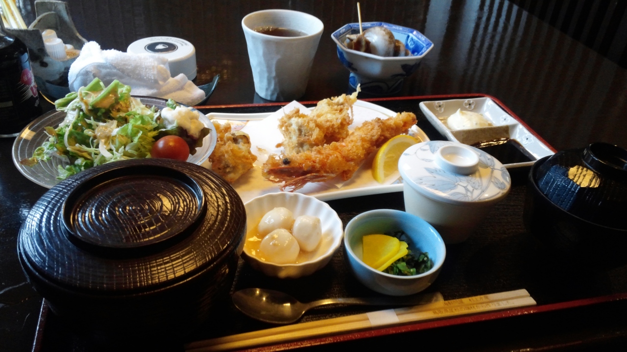 比較的繁華街の鳥取で少し隠されている場所にあります。前に牛肉を食べたいが、そのセットはありません。その代わりに、昼ご飯はとても安くて(650円だけです!)、大満足の海老フライ定食を注文しました。セットは綺麗で、サービスにいいです。