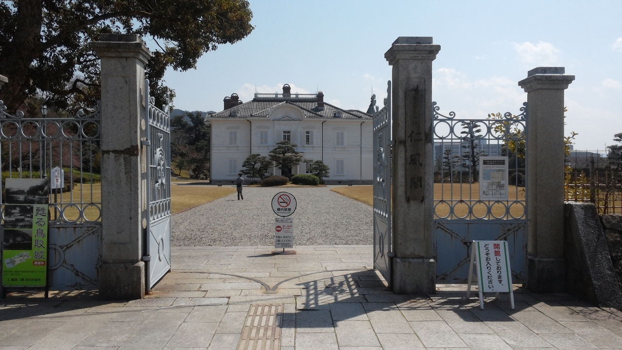 鳥取城跡と入り口だと言われる。西洋で、白くて、きれいな建物です。余分な豪華で作られていない。中に資料館があります。名前は王様についての歴史によく対応されています。鳥取駅から歩いては30分もかかります。