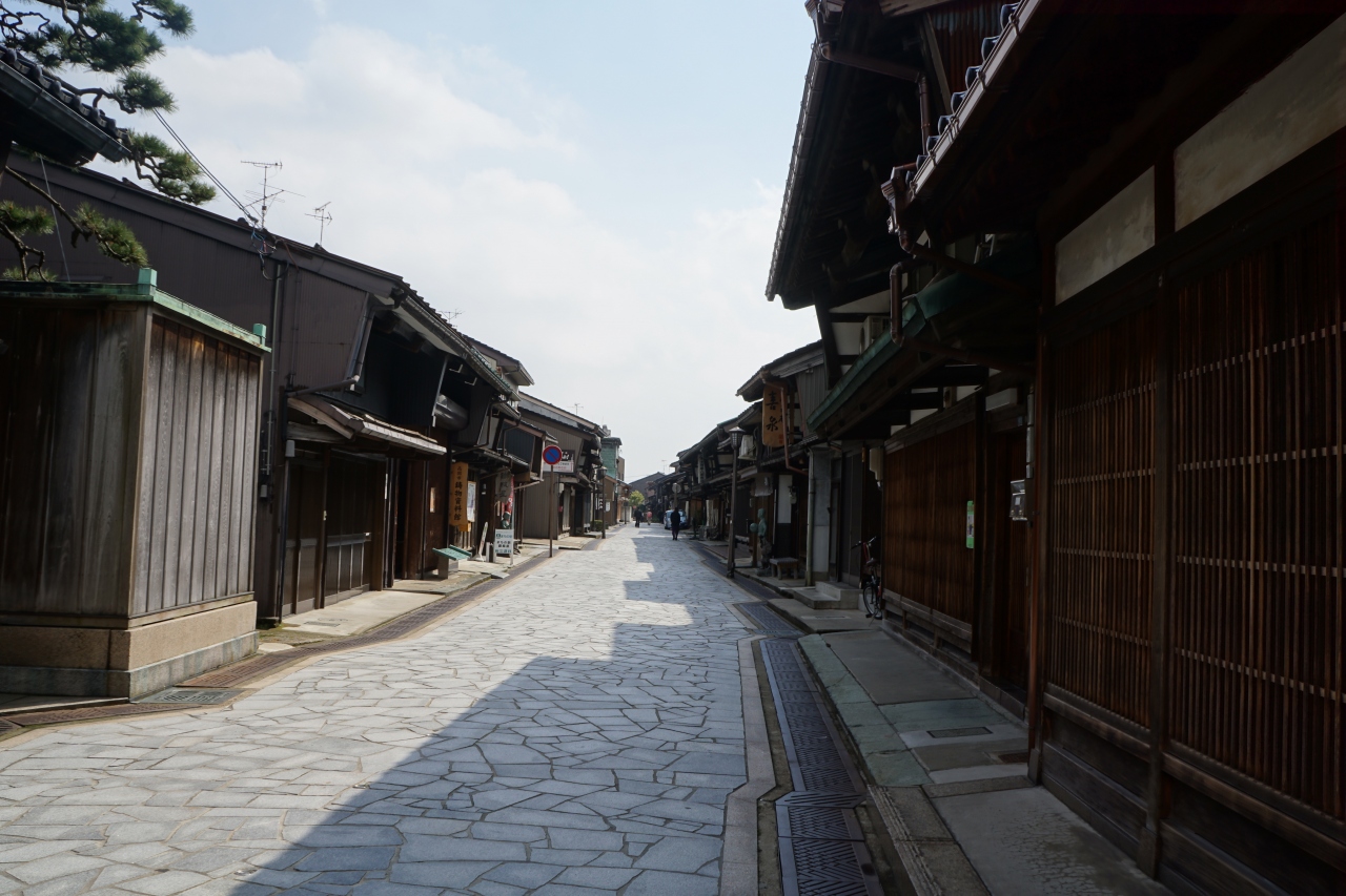 金屋町の千本格子の家並みは、重厚な土蔵造りの町家が残る山町筋に対して、石畳の通りは少し蛇行しているし、細かな格子は繊細でちょっと女性的な雰囲気がありますね。ただ、内部を公開しているところはないようで、それはちょっと残念。なお、500mも続く街並みは国の重要伝統的建造物群保存地区にも選定されています。