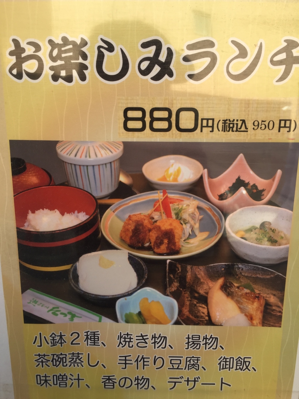 日吉駅前は飲食店が沢山あります。慶應大学があるからでしょうか。大学生が入らなさそうな和食のたつ吉さんへ。店内は高級な感じがします。でもランチは950円からありました。注文したお刺身御膳(1600円)は小鉢、茶碗蒸し、ごはん、お味噌汁、お漬物、ムースのようなデザートが付いていてお腹いっぱいになりました。ご飯はお代わりできるようでした。