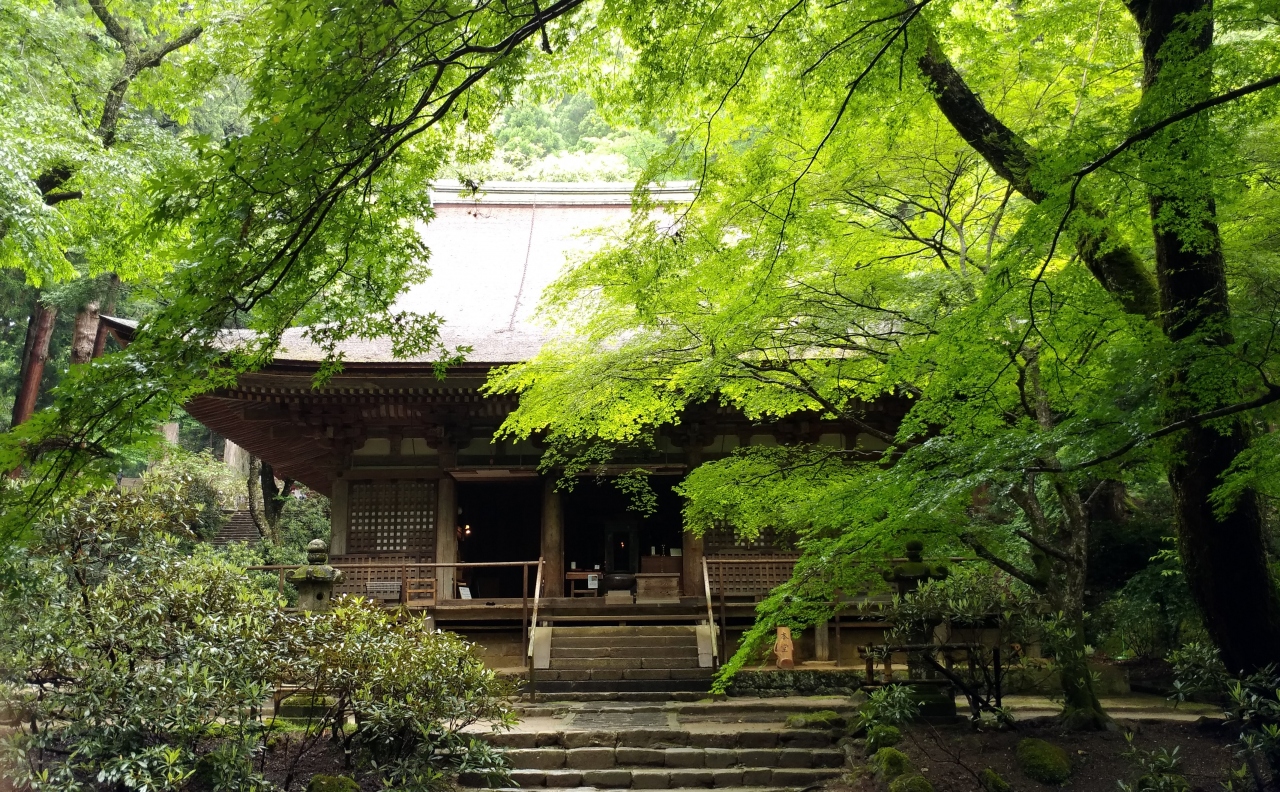 室生寺は山の中の寺である。緑の木々に囲まれて寺は在る。金堂の裏手を少し上った台地に灌頂堂が建っている。灌頂堂は真言宗で一番重要な法儀を行うところで、室生寺の本堂である。普段なら、内陣には御本尊の如意輪観音坐像が祀られているのだが、現在は修復の為に不在中、お戻りは2018年3月とのこと。