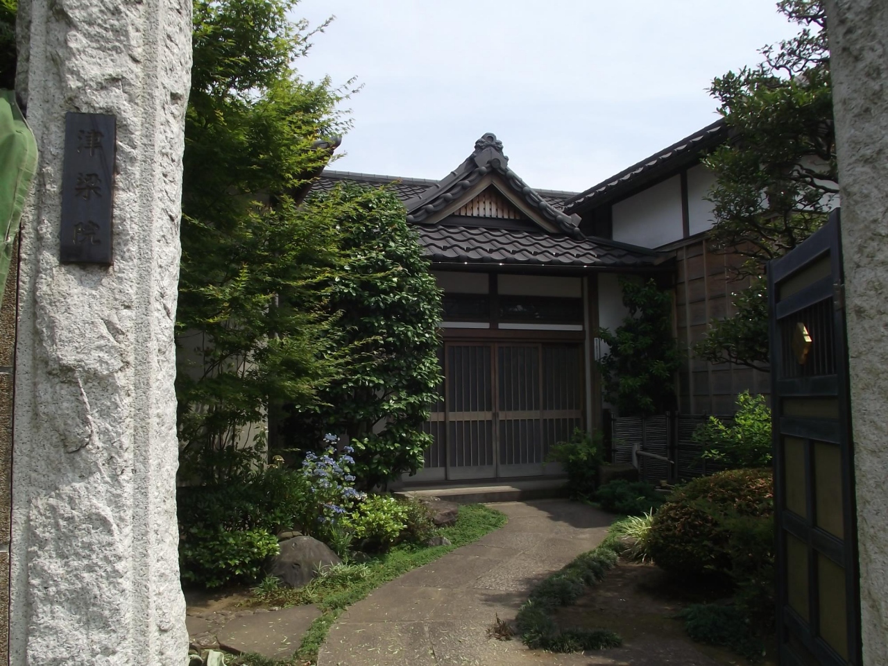 言問通りから入った通路の突き当りで石の門柱がある普通の住居に見えるが、門柱に院号表示があるので何とか分かります。