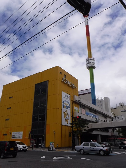 万代バスセンター周辺は、娯楽施設が数多く集まった一大商業地区で、万代シティという名称で呼ばれているようです。バスセンターは黄色い建物で、その上にレインボー色のタワーがあります。かつてはタワーも営業していたようですが、現在は動いていません。ド派手なタワーはバスセンターの目印としてちょうど良いと思います。この地域の第一印象は、日本じゃないみたいだと思いました。