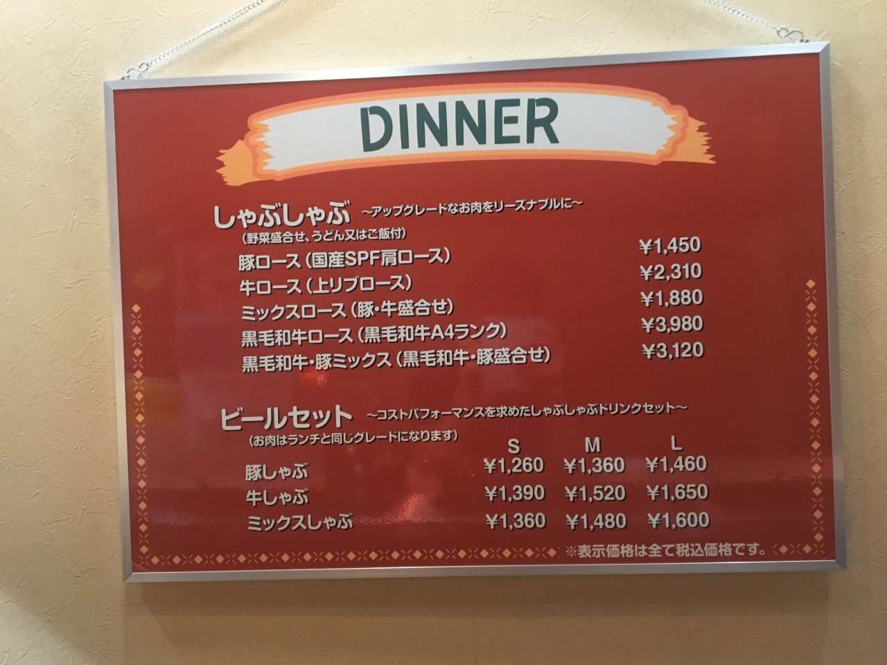 ビールセット、牛しゃぶM(1,520円)。