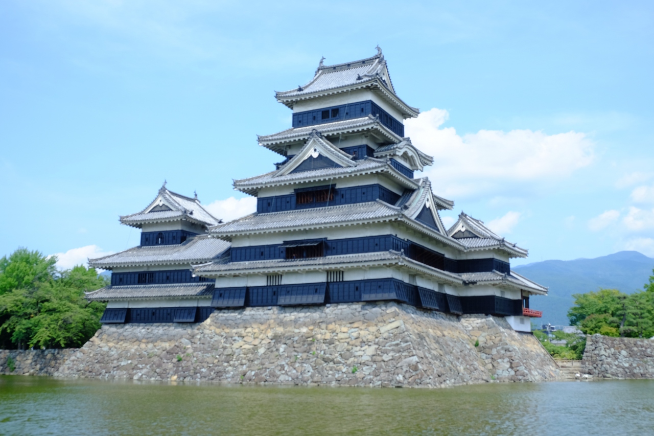 堀に囲まれた広大な敷地の真ん中にお城がそびえたっています。混んでいたので城内の見学はしませんでしたが、お城の周りをぐるっと回って見学してもどの角度からも色々な表情のお城が見えて素敵でした。黒っぽい外観から通称烏城とも言うそうです。