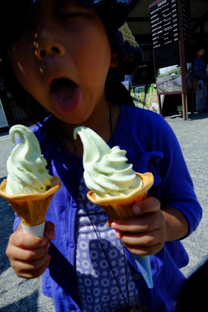 レストランが混んでいたのでこちらで軽食をとりました。休憩できるテーブルやいすもあって家族連れでにぎわっていましたが席はすぐ空くので大丈夫でした。わさび農場とあってわさびを使ったメニューがあれこれ。みんなが食べていたソフトクリームを恐る恐る食べてみましたが、想像したより美味しい!確かにわさび風味がするのに甘いソフト・・・。なのに美味しい。不思議なソフトクリームでした。