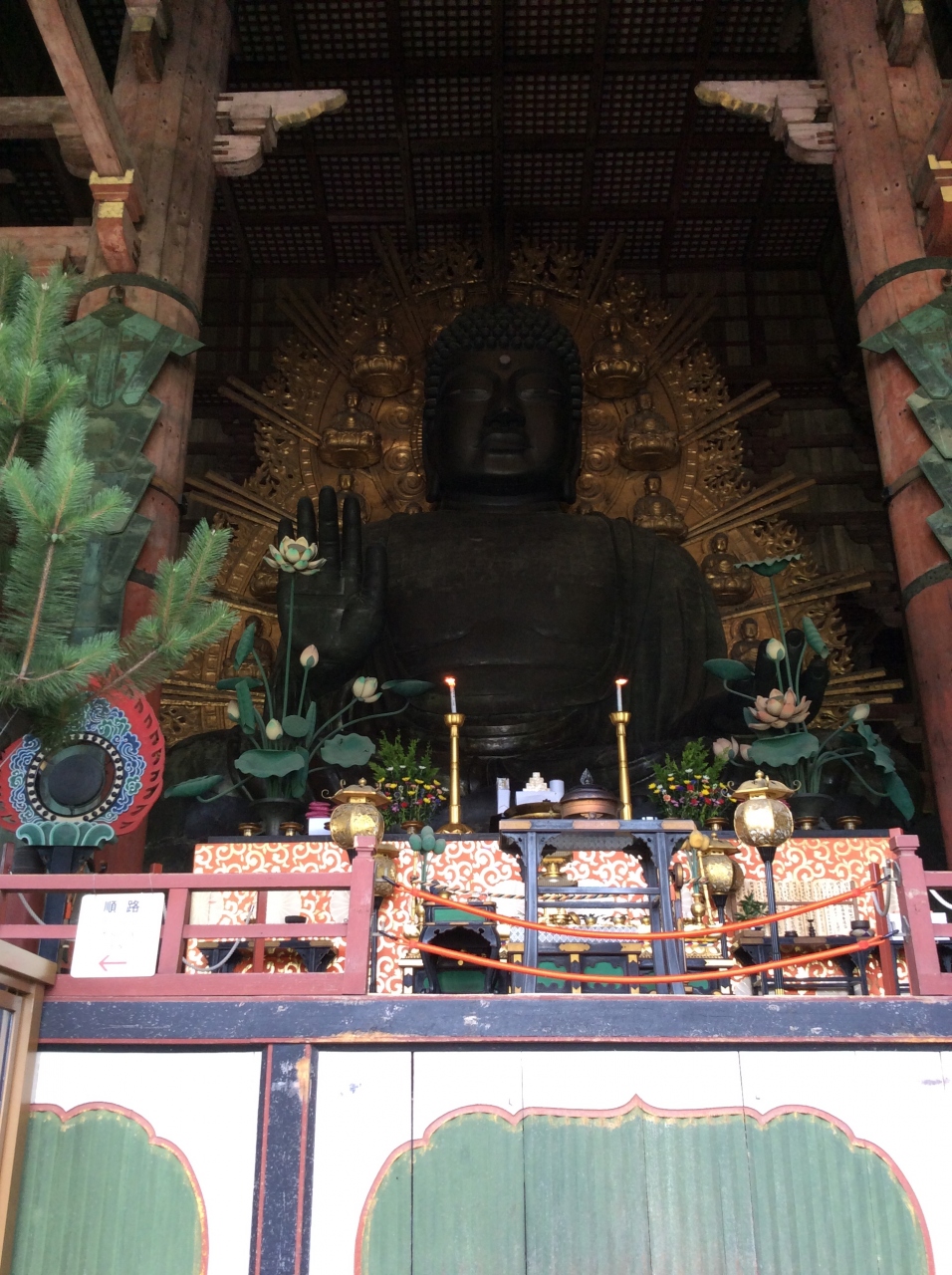 大仏殿内には、大仏の鼻の穴と同じ大きさに開けられた柱の穴があり、そこをくぐると無病息災の御利益があることで有名なので、行列ができて人気でした。