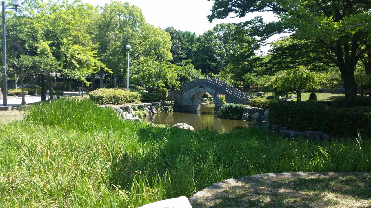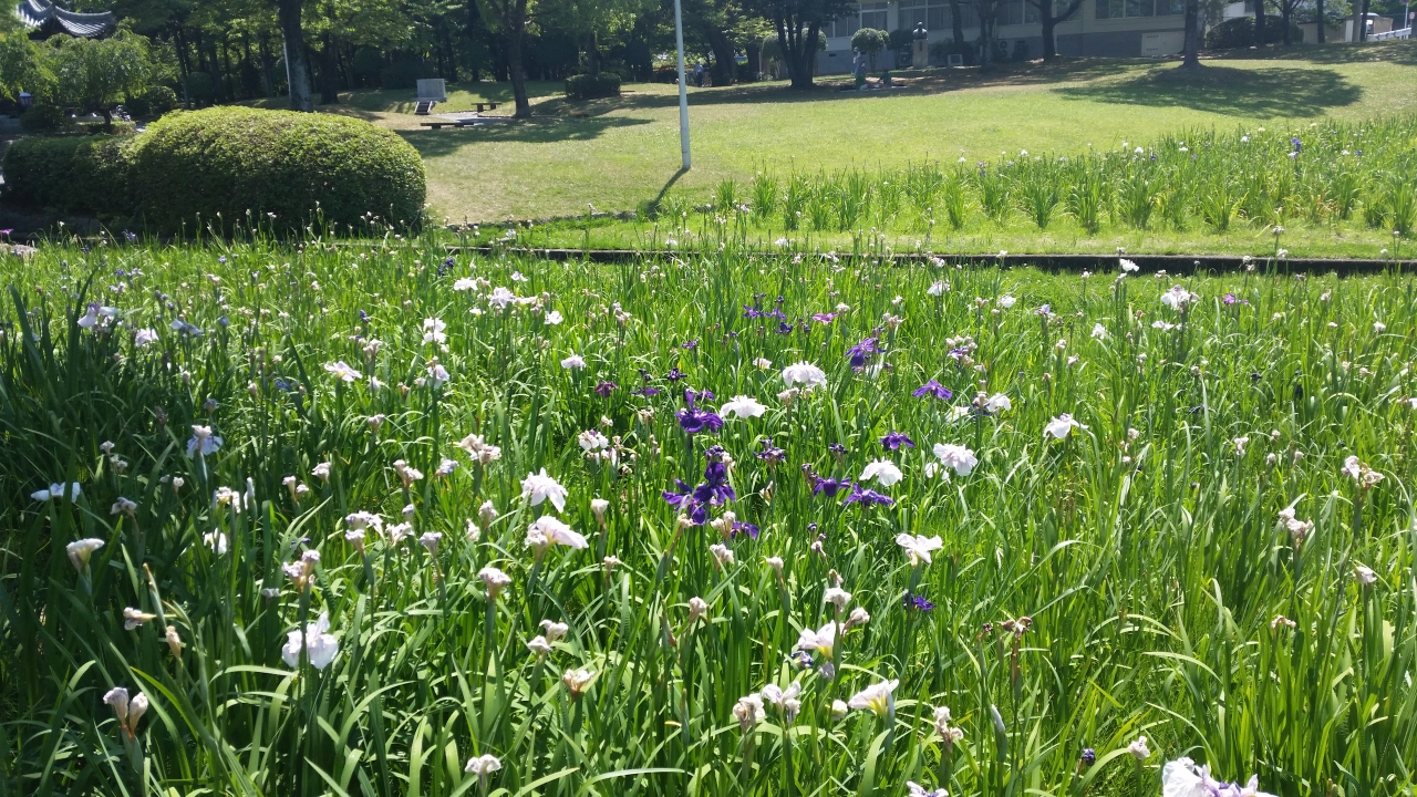 日帰りバスツアーで、花菖蒲を見に行きました。噴水の後ろ側が菖蒲園。でも、ピークは過ぎていて、1週間雨が降ってないので、地面はからからで花が可哀想でした。親水公園になっていて、水遊びもできそうでした。芝生では幼稚園の子供たちが遊んでいました。