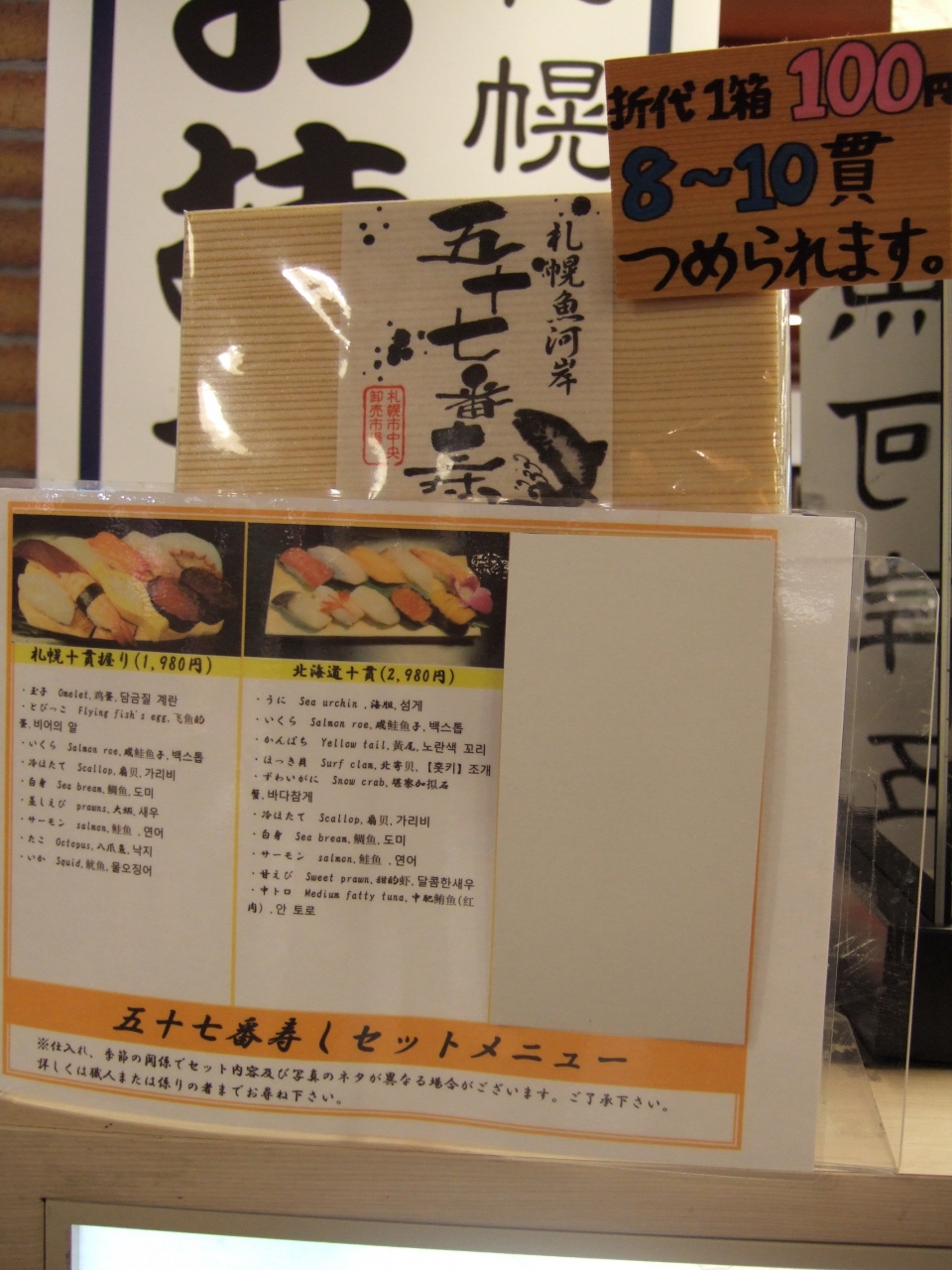 新千歳空港2階にある立ち食い寿司。旬のネタや変わったネタがありますが、寿司のクオリティだけでなく、値段も少し高めです。テイクアウトもできてラウンジで食べるのにも良いですが、10貫握りのセットだと少しお得です。