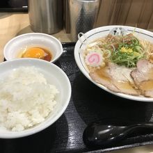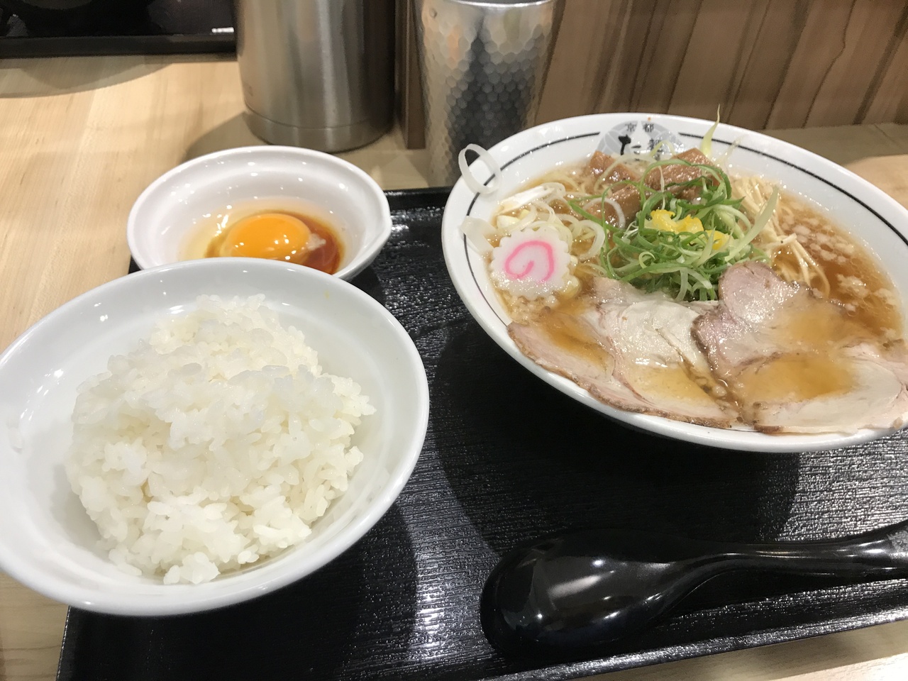 阪急梅田駅2階の改札内にあるラーメン屋さんです。京都に本店があるようです。いつも行列していたので試しにいきました、ラーメン、ライス、生卵で960円でした。ラーメンは背脂が浮いていますが、あっさり甘めの味付けでまずますでした。つけ麺のほうが人気があるようで