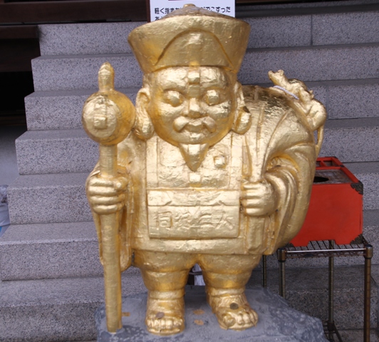 金箔を貼られた大黒天がいます。