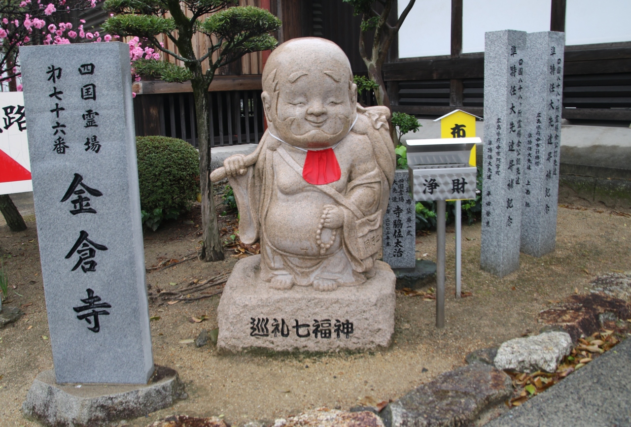 正式名称は鶏足山宝幢院金倉寺です。金箔が売られていて金箔まみれの大黒天が鎮座しています。88か所の中で金箔を貼るのはここ金倉寺だけです。「しょせん浮世は金まみれ」の金倉寺のイメージが強かったのですが実は天女伝説が残る安産・子育てのお寺でもあります。
