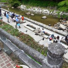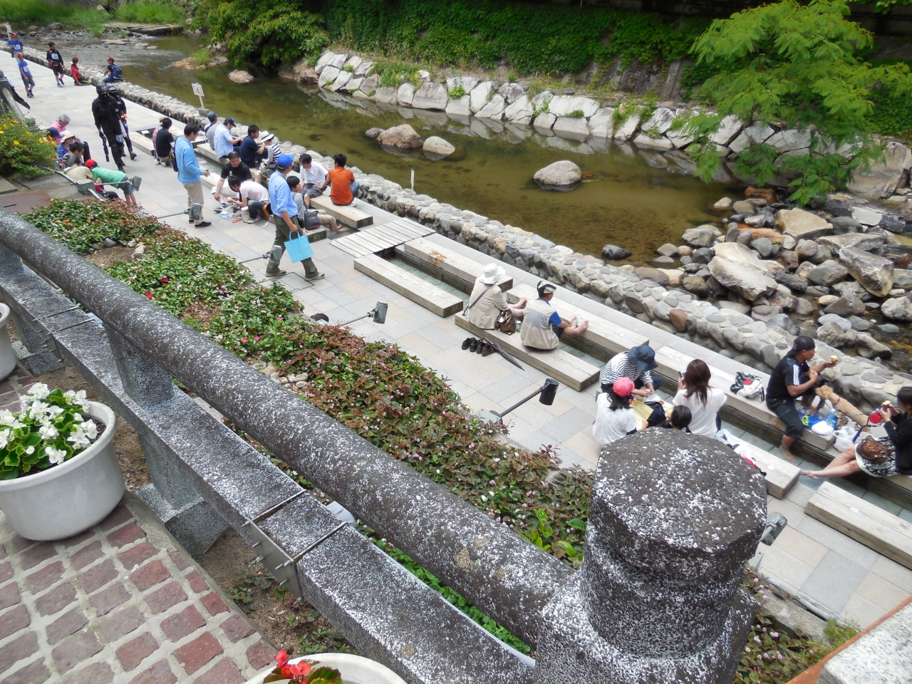 湯村温泉の荒湯そばにある無料の入浴施設で、お湯に足を浸して旅の疲れを取るにはうってつけです。段取りがよければ、荒湯の熱湯で作ったゆで卵やサツマイモ、ジャガイモなどをほおばり、春来川を眺めながら入浴出来れば、より充実して楽しそうです。