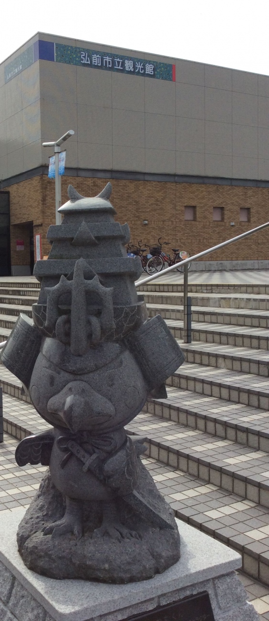 広場には、弘前市のマスコットキャラクターである、たか丸くんの石像が設置されていて、可愛らしかったので、思わず写真に撮りました。