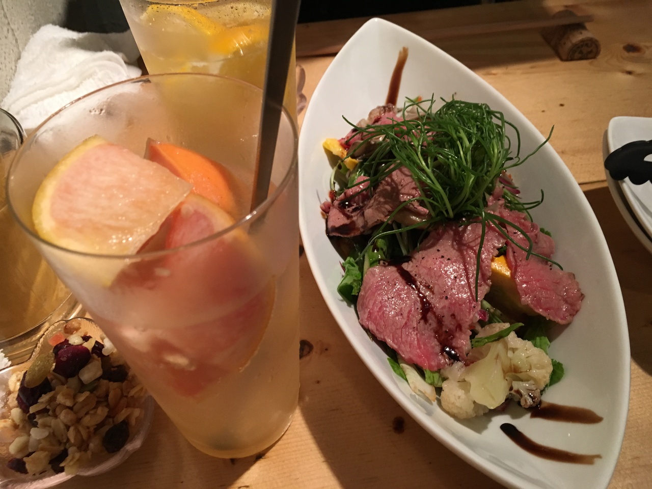 和牛のカルパッチョサラダは、肉のしっとり感とサラダのシャキシャキ・ゴロゴロ感のコンビネーションが宜しい。