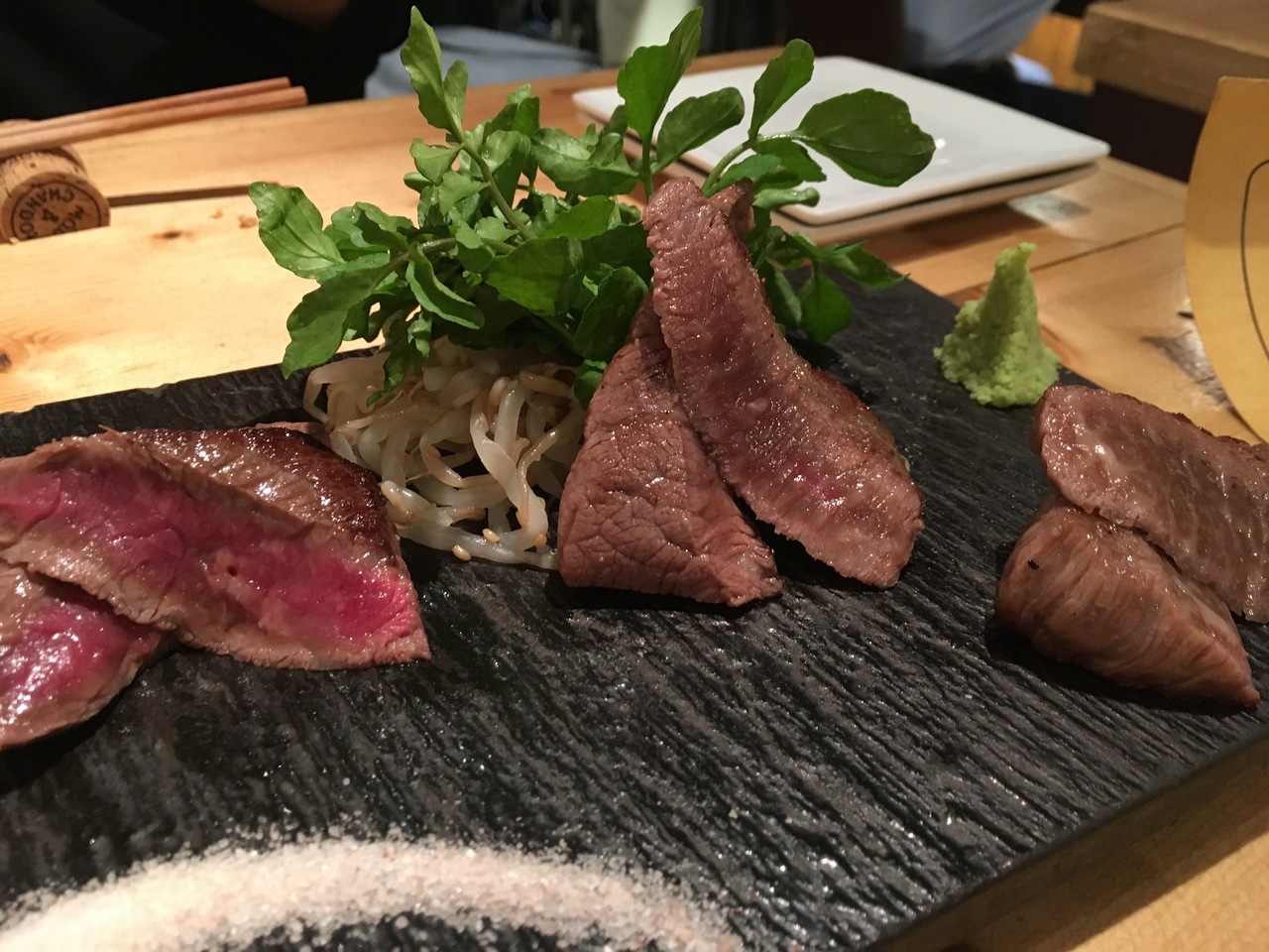 気まぐれ3種ステーキではどの部位が提供されたのか失念してしまったが、こちらはしっかり噛むことで肉の違いがわかるステーキ。量は多くないのでペロッといけてしまうが、体内に肉が染み渡るのを実感しつつ楽しみたい。