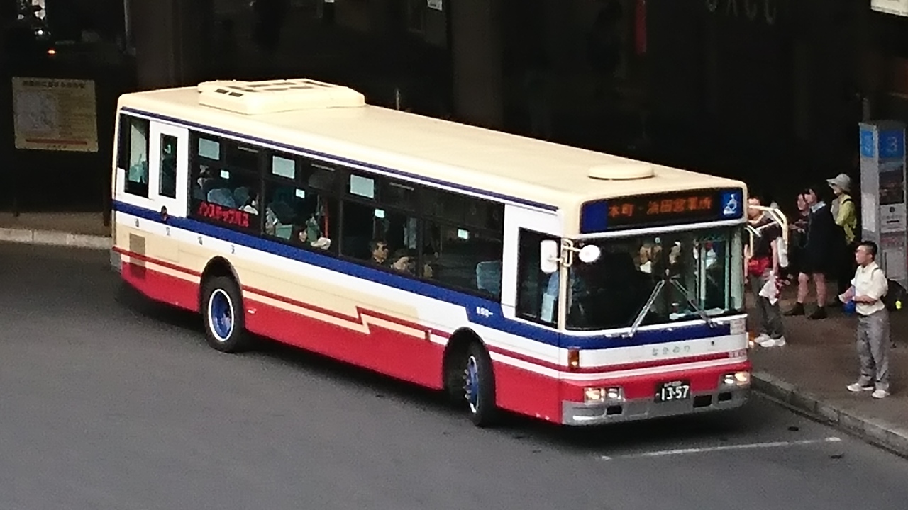 水戸市やひたちなか市を中心に路線バスを、また東京や名古屋、仙台などに高速バスを運行するバス会社。地元では茨交とも呼ばれています。以前は、ひたちなか海浜鉄道も茨城交通湊線という形で運行されており、車体もバスに似ていましたが、ひたちなか海浜鉄道に移管されました。水戸駅を中心に市内各地域への足となっており、水戸駅から偕楽園をはじめ、大洗海岸、袋田の滝、笠間などの観光地へのアクセスとしても使えます。茨城大学の前に車庫があり、茨大行きのバスが水戸駅から多数出ています。また、水戸ホーリーホックの試合時にはシャトルバスが多数出ます。バスには「水戸市納豆消費日本一奪還」なんていうメッセージが貼ってあったりします。同じ水戸市を走るJRバス、関鉄バスはPASMOやSUICAが使用できるものの、茨交は独自のICカード「いばっピ」しか使えないのが不便。