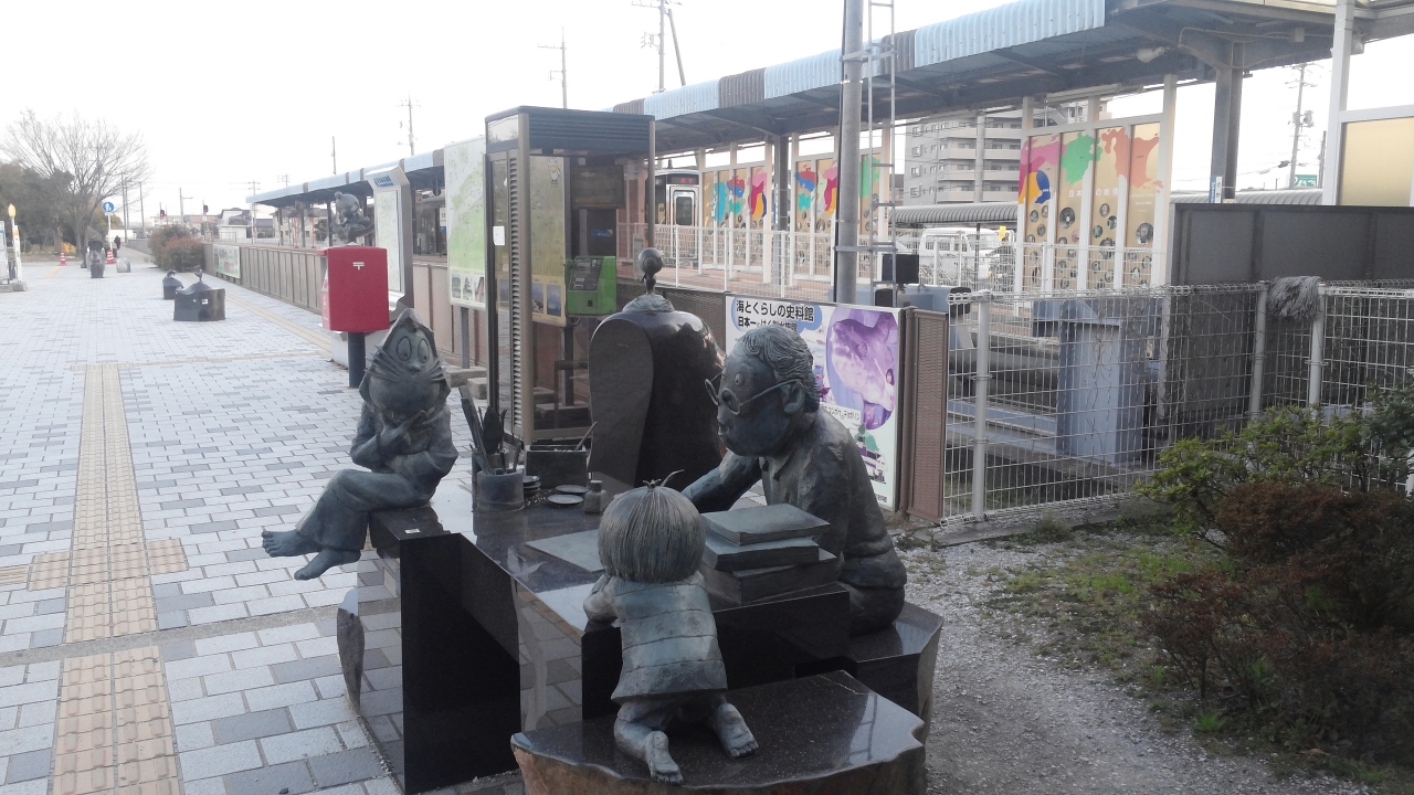列車を乗る初めて、ちょうど降りるのとき、駅の傍でも妖怪の雰囲気が目と耳で全然感じがる。短い通りに、何枚の妖怪についての銅像もあります。近くにホテル、レストラン、バス停など集めているから、相当便利です。