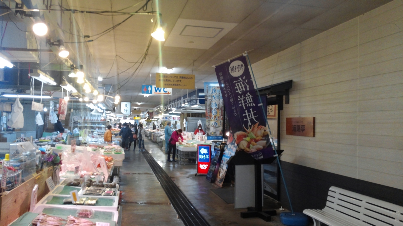 中央駅からゆっくり歩いて、回る散歩しては30分ごろ行けます。少し遠いですが、地元の海鮮すしと生き蟹、またジャームと醤油などのお土産を安くて買うことができます。床は少し濡れており、歩くときに注意するのにいいです。