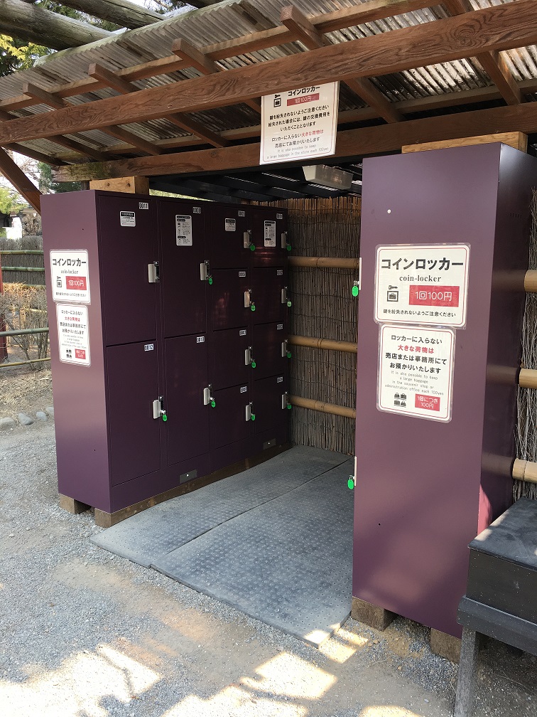 自身や周囲の安全のために、ちょっとした荷物でも事前に売店裏のコインロッカー(100円)に荷物を預けて身軽になってから天守閣に入ることを強くお勧めします。