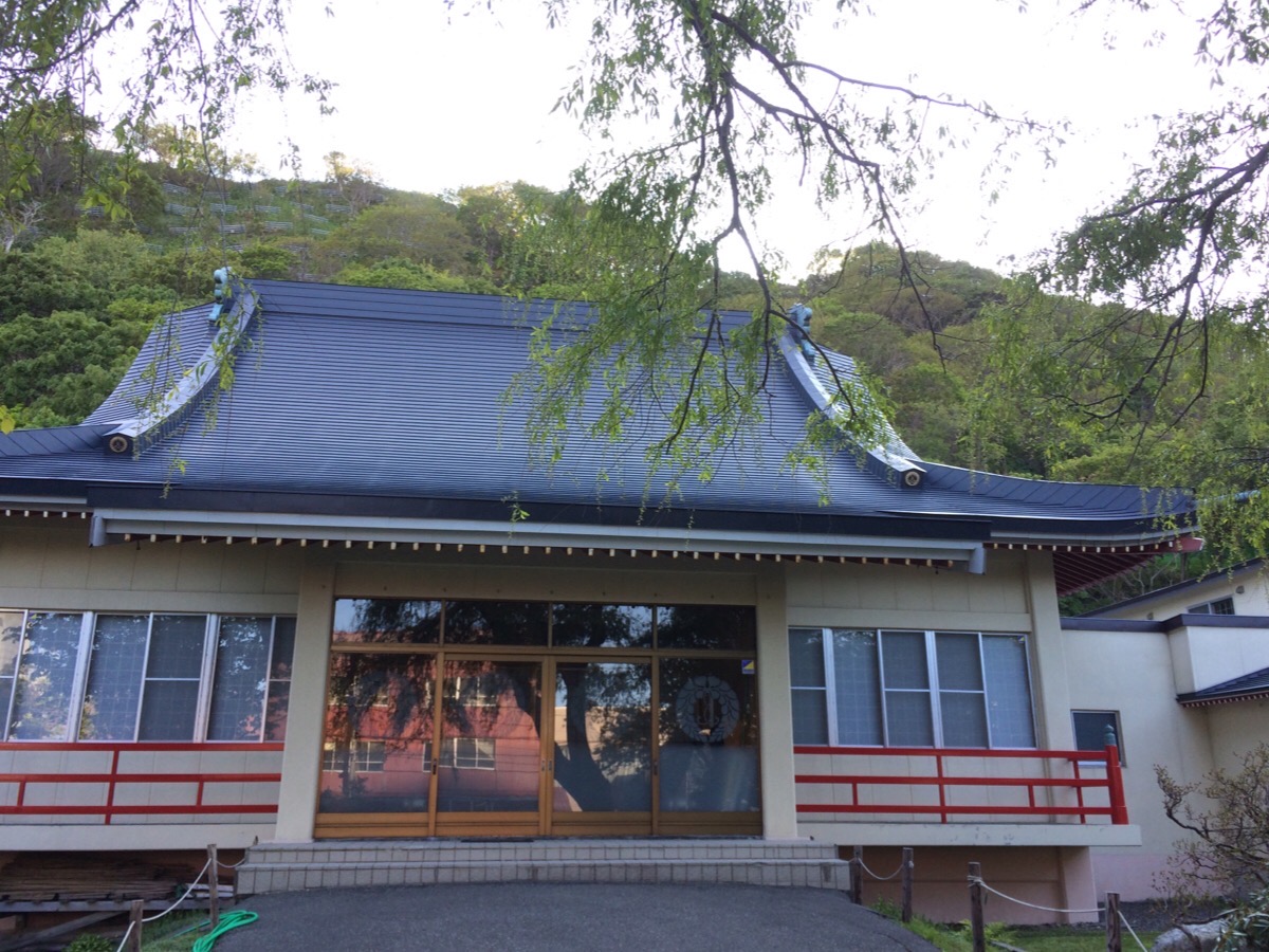 JR稚内駅から徒歩で行くことができる、稚内公園に隣接する神社でした。大鳥居をくぐって境内に入ると社殿に続く急な石段があります。立ち寄った際には、石段のところにキタキツネがのんびり表れて楽しませてくれました。登りきると社務所などがあります。