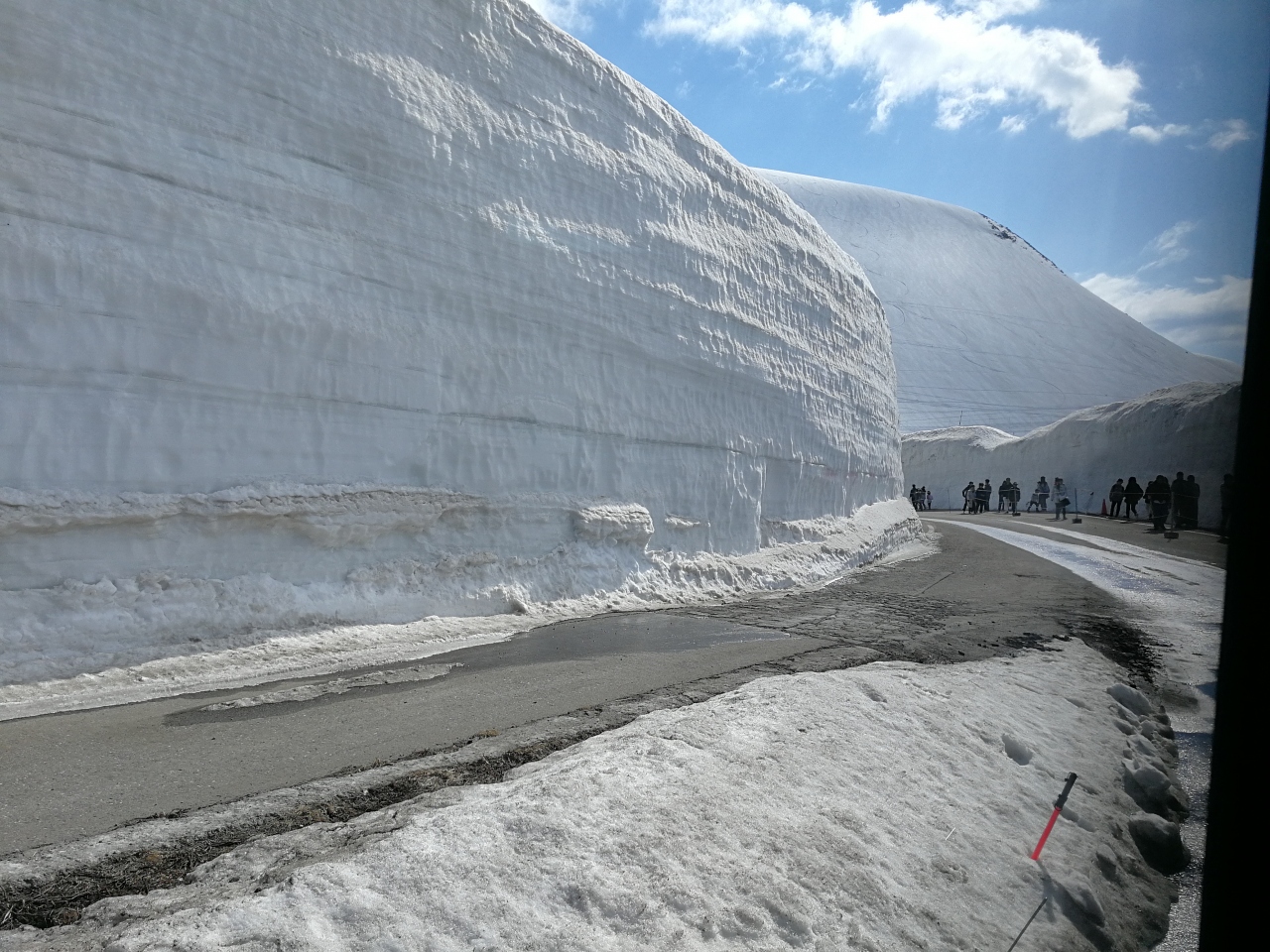真っ白な雪に、いろいろな国の客に人気がとても高いです。道路は大体ちょうど2つ列のバスで運転することができます。傍で歩いて近距離体験する客がいっぱいです。5月に最高です。もし後の月に雪の壁は低くなると考えます。