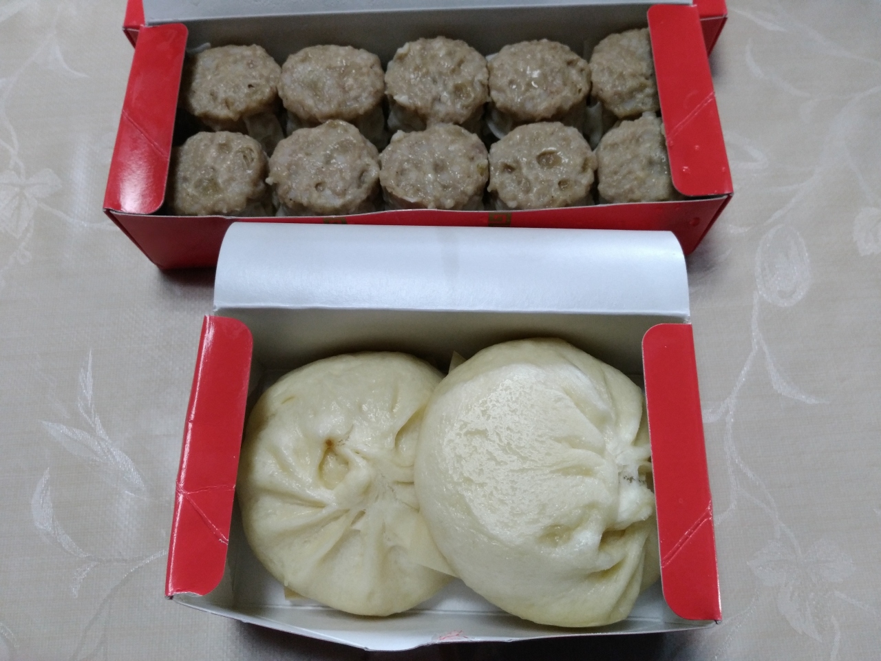 豚まんの皮は厚いけど美味しいよねー!とパクパク食べていました。