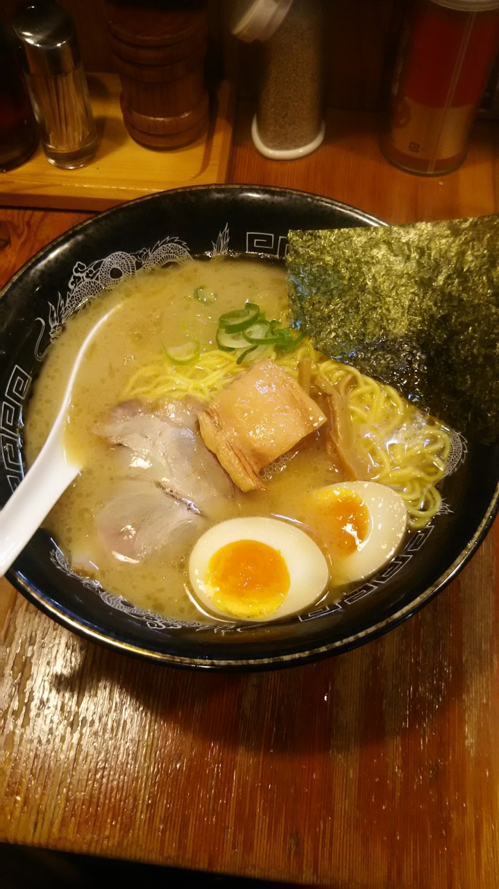 井の頭線渋谷駅近くにあるこってり豚骨らーめん。おすすめされた特丸ラーメンを注文。煮玉子、メンマ、海苔、角煮、チャーシューと全部のせな感じです。太麺か細麺か選べます。スープは想像通りこってり。好みが別れるでしょう。