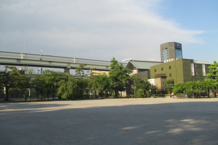 深川公園の正面から見ると、広いグランド・エリヤの奥の木立に、黒くて大きな石板の「明治三十七八年役戦死者忠魂碑」があります。永代寺跡の碑はその右下に建っています。何の変哲もない小振りな石碑で、なおかつ、ちょっと傾いています。江戸時代はこの地に永代寺があったのですね。この一帯は永代島と呼ばれる中州だったところで、そこに建立されたことから永代寺となったものです。少し西方で隅田川に架かる永代橋がその名残りとなります。また、永代寺は江戸六地蔵尊の1つだったお寺です。各街道を守る地蔵尊がそれぞれの街道の始まり近くに置かれたのです。東海道は品川寺、奥州街道は東禅寺、甲州街道は太宗寺、中仙道は真性寺、水戸街道は霊巌寺、そして、最後に出来たのが千葉街道の永代寺だったのです。