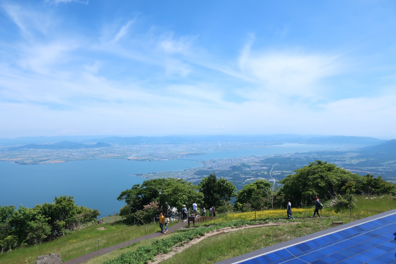 そして山頂からテラスまでも凸凹道でつえをつきながらは大変でした