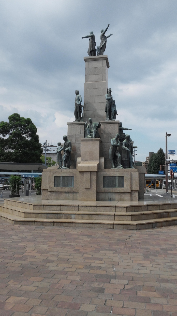 ちょうど市内電車の駅とソラリア西鉄ホテルの傍で、西洋の服に着る銅像の人に改革と進歩についての意味をよく表現されます。特に一番の上に、二名の銅像で自信で輝く未来を迎える意識に示す。いつも都市の周りの雰囲気を対応されます。