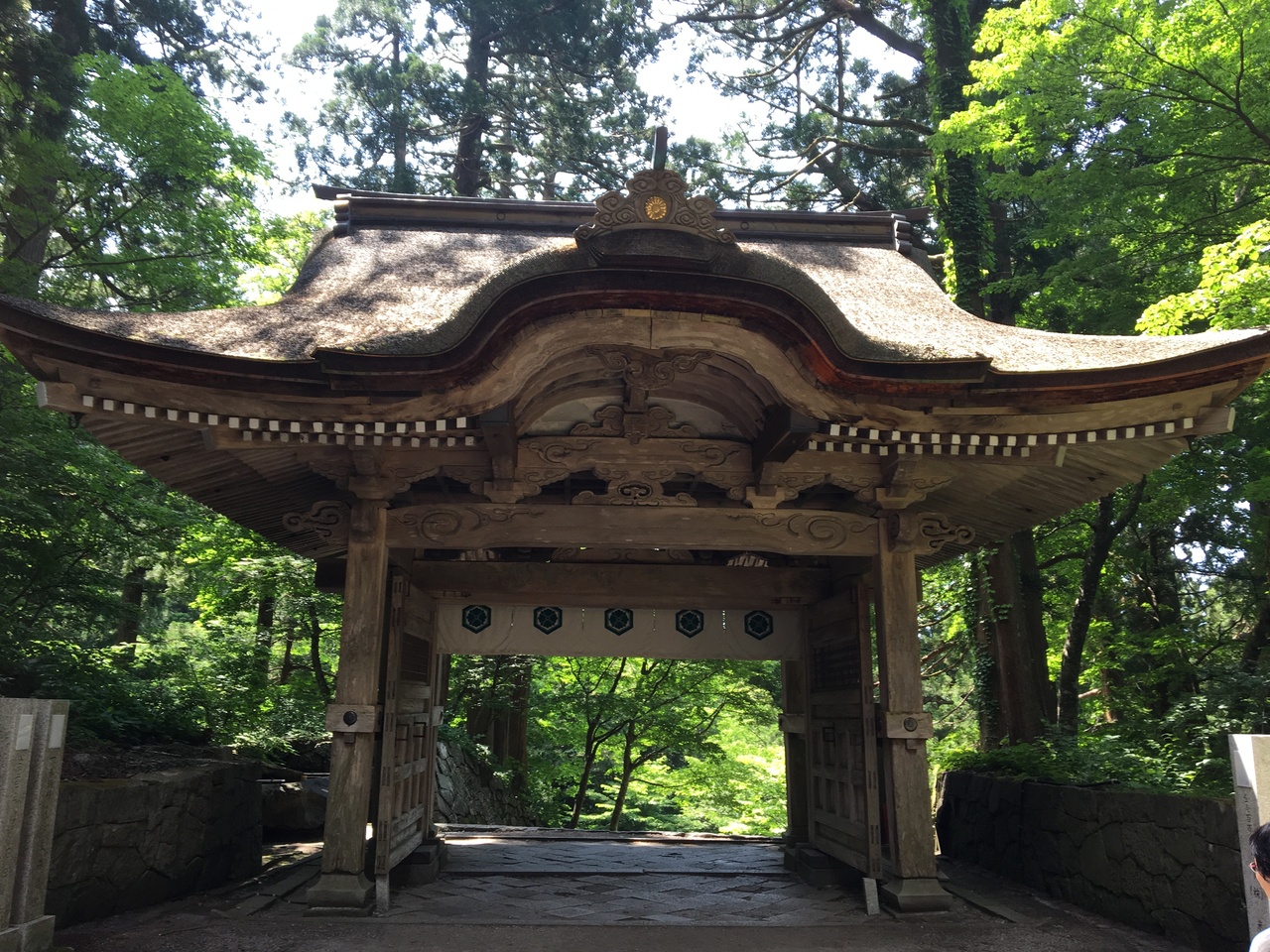 大神山神社奥社の手前にある門ですが、階段の上にそびえる立派な門でした。大山寺本坊の門が移築された時にそのまま表裏が逆になったとかの解説板がありました。確かに奥社からみると引戸になっていました。雰囲気ある写真映えする門です。