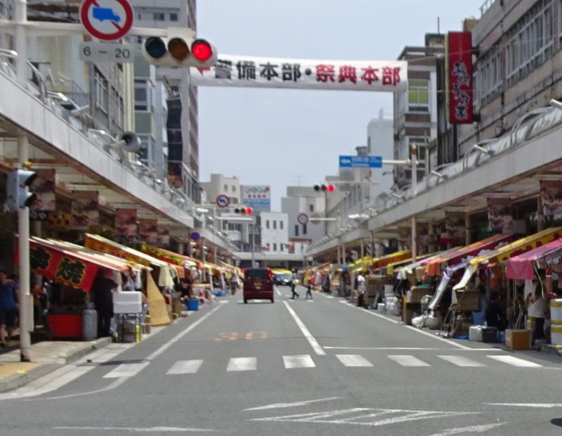 道の両側には出店が途切れなく並び、浴衣を着た人たちも多く見受けられます。