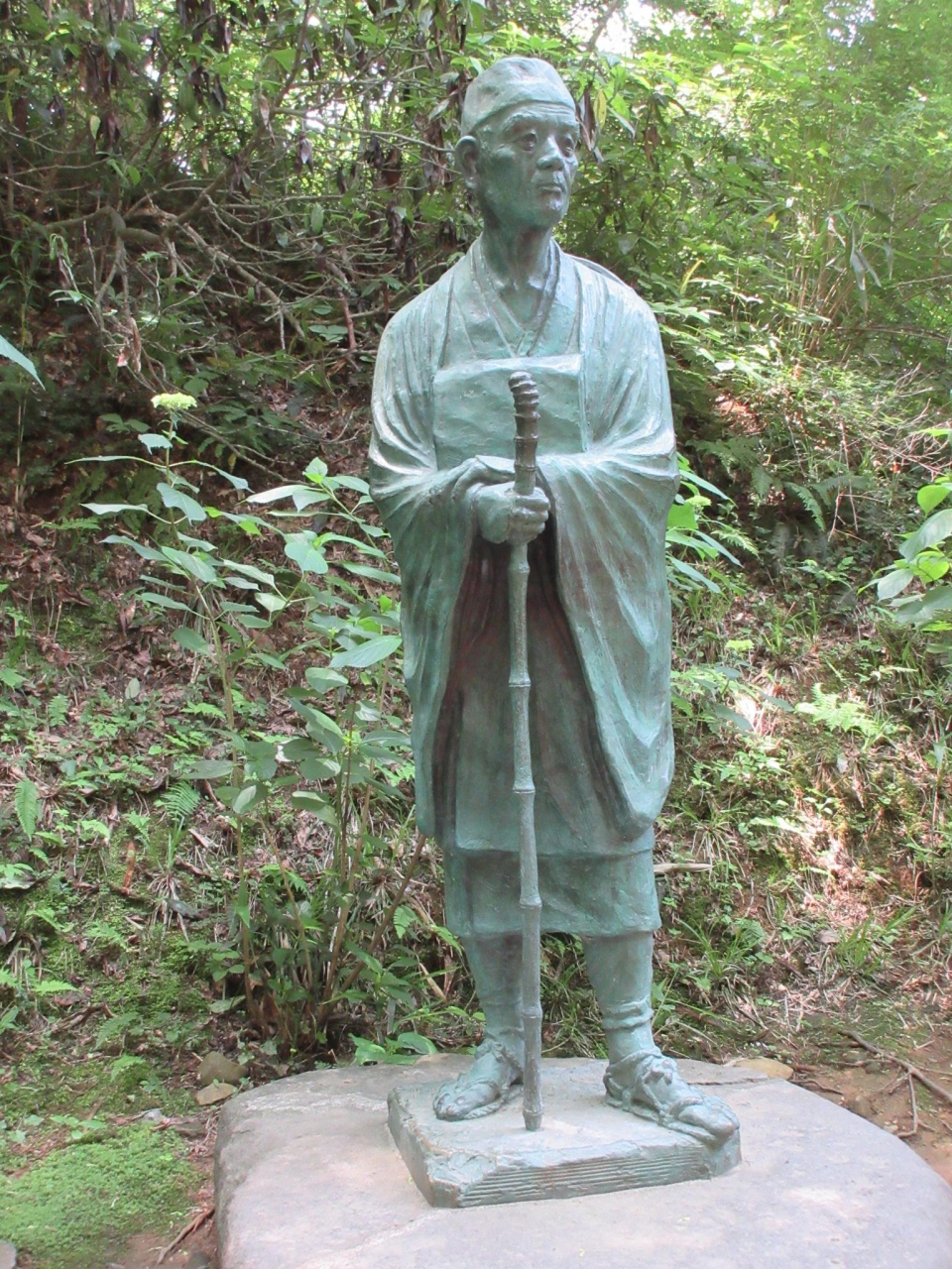 ここの松尾芭蕉像は、いい感じだったので写真に撮ってきました。何気なく横の解説をみると、東京芸術大学の戸津圭之介教授が創ったものだそうです。そういう目で見ると、さらにいい感じに見えてきました。金色堂を出てから山側の方にありました。