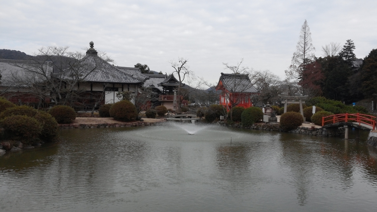 神社は湖によく囲まれ、主の建物と橋がオレンジ色に塗られている。神社の中に低い鳥居もあります。神社は近くの少し古く、黒い建物に強くに区別されます。平和の湖に噴水の設備をありますから、水を綺麗になります。