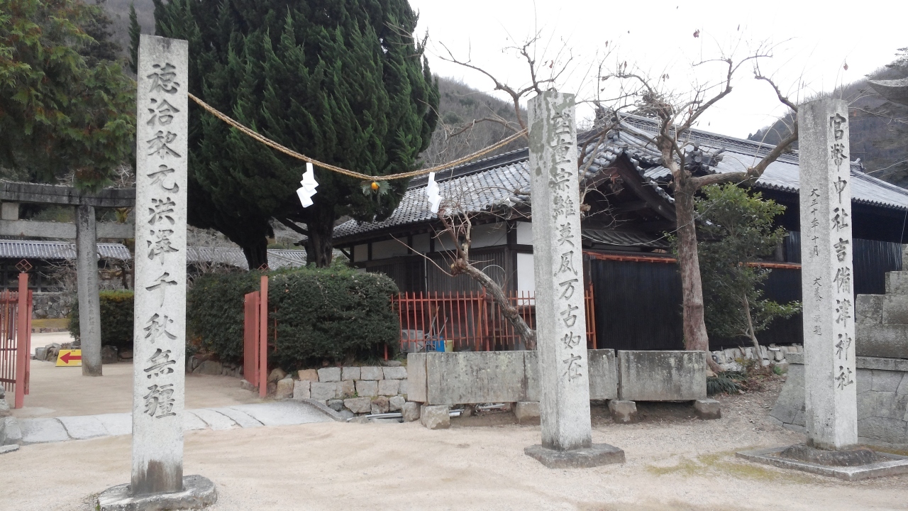 JR吉備津駅から10分ごろ歩いて行けます。岡山中央の商業の雰囲気に強くに区別されます。回る黒く、低く、伝統的な建物と自然の植物で心に静かになりやすいです。少し古く、白い石碑で長い歴史の意味も伝えます。