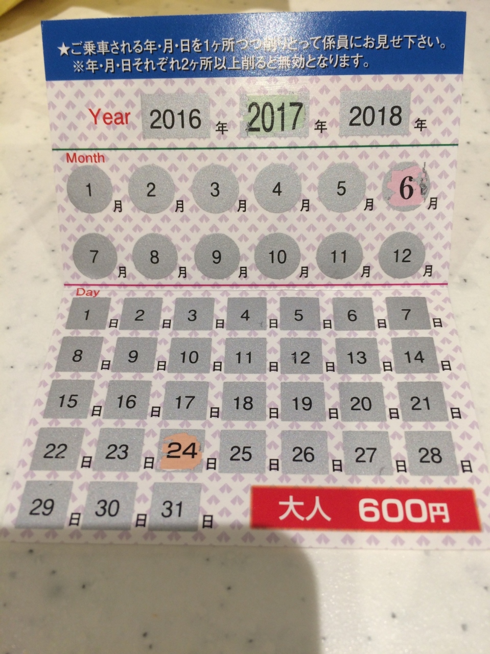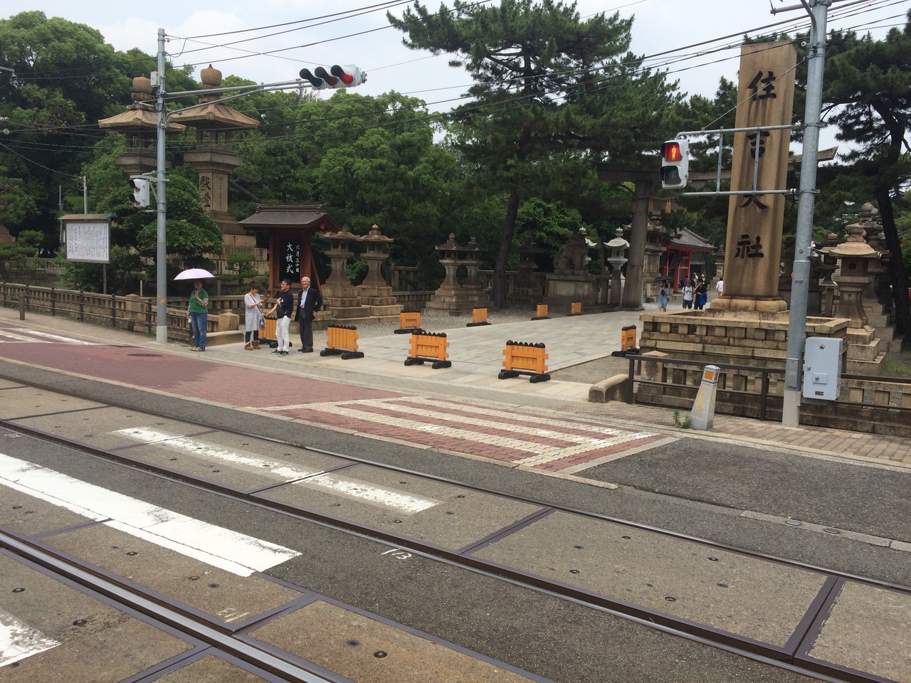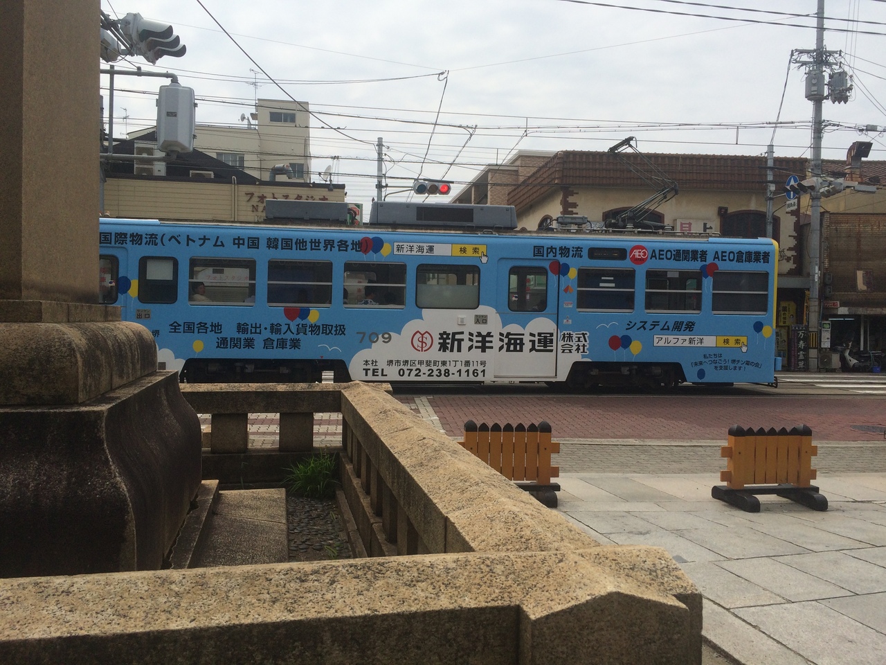 新今宮駅前から一日乗車券600円を購入し、堺方面に行きました。乗車日を塗りつぶす乗車券でした。乗り物は停留所名のアナウンスの後、ボタンを押して降ります。住吉大社へは目の前が停留所なので便利でした。1乗車210円なので3回のれば得です。