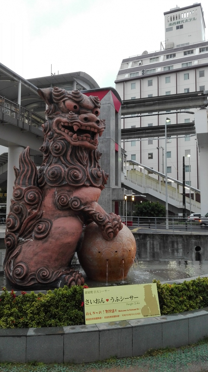 訪れた当日、牧志駅前を通る観光客などは、シーサーの姿を見ると足を止め、シーサーの前に移動し写真撮影なでを楽しんでいました。